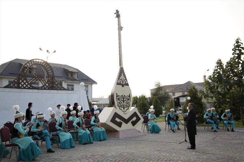 جامبىل وبلىسىنىڭ اكىمى بەردىبەك ساپاربايەۆ جاڭا ەسكەرتكىش تۋرالى ايتا كەلە، قازاقتار ءۇشىن دومبىرانىڭ ماڭىزدىلىعىن ايرىقشا اتاپ ءوتتى. دومبىرا حالىق ومىرىندە ەرەكشە ورىن الادى. ول كوشپەلى قازاقتىڭ قولىنان تۇسپەگەن، قۋانىش پەن قايعىسىندا كوڭىل سىرىن شەرتكەن، جان- سىرىن ونىڭ كۇمبىرلى كۇيىمەن جەتكىزسە، اۋەزىن انگە ۇيلەستىرۋ ارقىلى تەبىرەنگەن قاسيەتتى اسپاپ. دومبىرا كۇيلەرى - يۋنەسكو-نىڭ ماتەريالدىق ەمەس مۇرالارى تىزىمىنە ەنگەن.