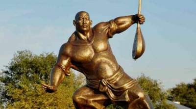 ءبىر كۇنى قىتاي يمپەراتورى ءزاۋلىم سارايدىڭ الدىنداعى ارىستانىڭ تاس ءمۇسىنىن كوتەرگەن ادامنىڭ تىلەگىن ورىندايمىن دەپ جار سالىپتى. كۇشىن سىناۋعا كەلگەندەر ءمۇسىندى ورنىنان قوزعالتا دا الماپتى. سوندا ءبىر ءۋازىر: «بۇل تاستى تۇرمەدە جاتقان قازاقتىڭ بالۋانى كوتەرۋى مۇمكىن»، - دەيدى. وسىلايشا يمپەراتوردىڭ بۇيرىعىمەن بۇلانبايدى تاس ارىستانعا الىپ كەلەدى. ول: «ماعان ءبىر اي مۇرسات ەتىڭىزدەر. الدىمەن، قويدىڭ ەتىن بەرىڭىزدەر، سونان سوڭ ەكى قولىمدى يىعىما دەيىن قايىس ارقانمەن بايلاساڭىزدار، مەن تاستى كوتەرەمىن»، - دەپ جاۋاپ قايىرىپتى. بۇلانبايدىڭ تىلەگى ورىندالادى. ءدۇيىم ەلدىڭ الدىندا ول ارىستاننىڭ تاس ءمۇسىنىن قوس قولداپ كەۋدەسىنە قويىپ، ىلە- شالا باسىنان اسىرا كوتەرىپتى. كۇشىنە رازى بولعان قىتاي يمپەراتورى بۇلانبايدى سىي- سياپاتپەن ەلىنە قايتارعان ەكەن.