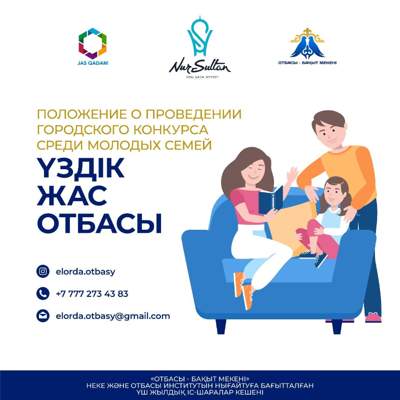 قالالىق جاستار ساياساتى ماسەلەلەرى باسقارماسى ەلوردا تۇرعىندارى اراسىندا «ەڭ ۇزدىك جاس وتباسى» بايقاۋىنىڭ ءمالىم ەتتى. وعان استانادا تۇراتىن جانە كونكۋرس باستالعانعا دەيىن رەسمي تۇردە تىركەلگەن وتباسىلار قاتىسا الادى. سونداي- اق ەرلى- زايىپتىلاردىڭ ءبىرىنىڭ جاسى 29 دان اسپاۋى كەرەك. بايقاۋ 4 كەزەڭنەن تۇرادى. ءبىرىنشى كەزەڭدە جاس وتباسى قاتىسۋعا ءوتىنىش جىبەرىپ، بەينەۆيزيتكاسىن جاريالايدى. «بەينە ۆيزيتكانىڭ تاقىرىبى - «بۇل جارىستا نەگە ءبىز جەڭىسكە جەتۋىمىز كەرەك؟» . ول Instagram-دا #NSjastary, #مەنىڭوتباسىم، #موياسەميا، #OtbasyBakytMekeny, #NSotbasy2020, #وتباسىكۇنى2020 حەشتەگتەرىمەن جاريالانۋى كەرەك. بايقاۋعا قاتىسۋشىلاردىڭ بەينەماتەريالدارى «قولدانىستاعى» پاراقشادا جاريالانۋى جانە Instagram-پاراقشا اشىق بولۋى كەرەك. ۇزاقتىعى كەم دەگەندە 1 مينۋت جانە كوپ دەگەندە 3 مينۋتتان اسپاۋى قاجەت. بارلىق سايىسكەرلەر @ns_jastary, @elorda.otbasy Instagram-پاراقشالارىنا جازىلۋى ءتيىس»، - دەلىنگەن تاراتىلعان اقپاراتتا.