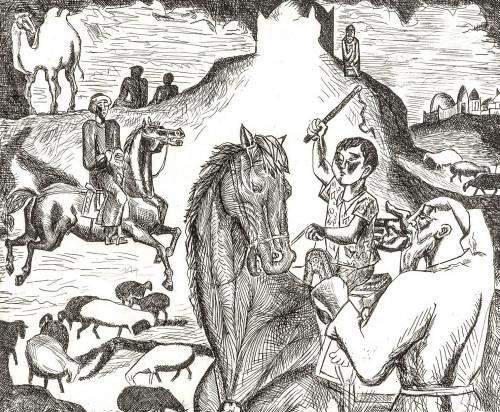 كارتينا جازۋ بوياۋدى كەنەپكە توگە سالۋ ەمەس. ءاربىر ءتۇس تامشىسىنان ءومىر كورىنىستەرىن ىزدەۋ. بالكىم، تاعدىر سۋرەتتەرى... تاپ باسىپ ايتا المايسىڭ. قىلقالامنىڭ قۇپياسى دا سوندا سەكىلدى. كەز كەلگەن تۋىندى بارىنە بىردەي تۇسىنىكتى بولۋى ءتيىس ەمەس. وقىرمان شىعارمانىڭ جان دۇنيەسىنە بويلاپ، جۇرەگىن ءيىتىپ، كوڭىل كورىنىستەرىن قاراشىعىنا قۇيىپ، وي ورىسىنە جارىلىس الىپ كەلۋىمەن قۇندى. ءبىز ونى ونەر قايراتكەرى، بەلگىلى گرافيكا مامانى يساتاي يسابايەۆ شىعارماشىلىعىنا قاراپ تۇيسىندىك. تەرەڭىرەك، تولىعىراق. مىسالى، «مالشىلار» كارتيناسى.