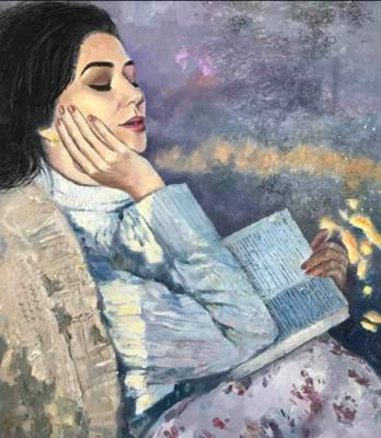 بەلگىلى سۋرەتشى مارات تۇرعامبايدىڭ «كەشكىلىك» كارتيناسى ايەل وبرازىنا قۇرىلعان. كەيىپكەردىڭ سۇلۋلىعىن تابيعاتپەن ۇندەستىرىپ، ونى اقىل تارازىسىنا سالعان شەبەردىڭ تۋىندىسى ۇلكەن ىڭكارلىكتەن باستاۋ العانى كورىنىپ تۇر. بۇل - اۆتوردىڭ مۋزاسى بولۋى دا مۇمكىن. سەبەبى مودەل بىرنەشە كارتيناسىندا كەزدەسەدى.