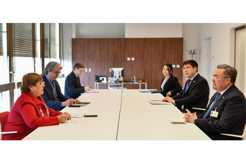 نۇر-سۇلتان. قازاقپارات - قازاقستان پرەمەر-ءمينيسترىنىڭ ورىنباسارى - سىرتقى ىستەر ءمينيسترى مۇحتار تىلەۋبەردى جەنيەۆاعا ساپارى بارىسىندا ب ۇ ۇ ادام قۇقىقتارى جونىندەگى جوعارعى كوميسسارى ميشەل باچەلەتپەن كەزدەستى.