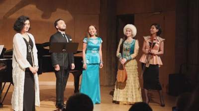 پاريجدەگى ەڭ بەدەلدى ساحنالاردىڭ بىرىندە دۋداراي مەن قۇسني قورلان اندەرى شىرقالدى. تۋعان جەرىن ساعىنعان قۇرىلتاي قوناقتارى ۇلى دالا اۋەندەرىن جىلى قابىلدادى.