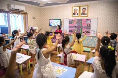 بالالاردى ەس بىلەر- بىلمەستەن باستاپ ۇجىمشىلدىققا جانە تەمىردەي تارتىپكە باۋليدى. مەكتەپتە جانە بالاباقشادا حورمەن ايتىلاتىن انت، باس ءيىپ تاعزىم ەتۋ، ساپتا ءجۇرۋ سياقتى كوپشىلىك بىرگە ىستەيتىن عۇرىپتار مەن راسىمدىلىكتەر كوپ. بالالار ءتىپتى مەكتەپكە بارعاندا جانە قايتقاندا ساپ تۇزەپ جۇرەدى.