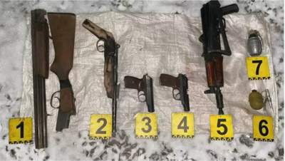 تەكسەرۋ بارىسىندا 16 كاليبرلى تەگىس ۇڭعىلى اڭشىلىق مىلتىق، 5.6 كاليبرلى قولدان جاسالعان مىلتىق، تراۆماتيكالىق جانە پنيەۆماتيكالىق تاپانشالار، كالاشنيكوۆ اۆتوماتى مەن جاۋىنگەرلىك جانە جارىق-شۋ گراناتاسى تاركىلەندى.