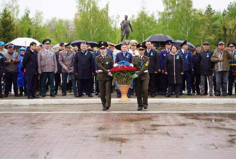 مەرەكەلىك شارا وبلىس اكىمى ەرمەك مارجىقپايەۆ، وبلىستىق ءماسليحات دەپۋتاتتارى، وبلىس اكىمىنىڭ ورىنباسارلارى، سوعىس جانە ەڭبەك ارداگەرلەرى، وبلىستىق جانە قالالىق كاسىپورىن- ۇيىم، مەكەمەلەردىڭ باسشىلارىنىڭ قاتىسۋىمەن كەڭەس وداعىنىڭ باتىرى مالىك عابدۋلليننىڭ ەسكەرتكىشى جانە كەڭەس وداعىنىڭ ەكى مارتە باتىرى تالعات بيگەلدينوۆتىڭ بيۋستىنە گۇل شوقتارىن قويۋ راسىمىمەن باستالدى.