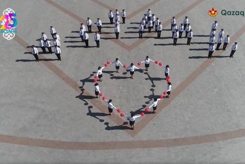 اسكەري پوليتسەيلەر استاناعا دەگەن سۇيىسپەنشىلىگىن «جۇرەكپەن» جەتكىزدى - ۆيدەو