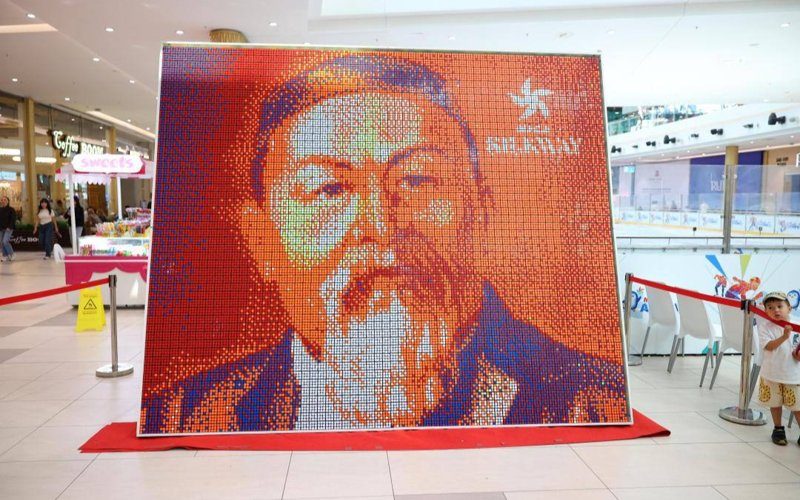 بيىكتىگى 3 مەتر، ەنى 2 مەتر بولاتىن پورترەتتى سپيدكۋبەر جاستار نەبارى 5 ساعاتتا جيناپ شىقتى. جوبانىڭ باستاماشىسى ءاليحان ەرتۇرسىننىڭ ايتۋىنشا، رۋبيك تەكشەسى لوگيكا مەن شىعارماشىلىقتى ۇشتاستىراتىن ونەر تۋىندىسىنا اينالدى.