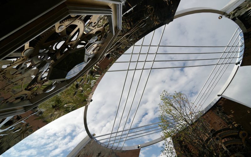 مونۋمەنتتىڭ ىشكى قابىرعالارىنا ايناداي جارقىراعان بولات قولدانىلعان. بۇل تەك ءسان ءۇشىن ەمەس، تەرەڭ ويدى مەڭزەيتىن شەشىم.