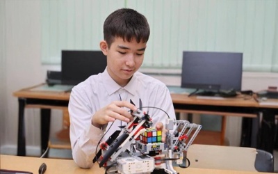 استانا قالاسىنداعى ءالىمحان ەرمەكوۆ اتىنداعى 38-مەكتەپ-ليتسەيىنىڭ 7-سىنىپ وقۋشىسى شاحنازار كامالوۆ ءبىر مينۋت ىشىندە «كۋبيك رۋبيكتى» تولىقتاي اۆتوماتتى تۇردە جيناي الاتىن اقىلدى روبوت جوباسىن كوپشىلىككە تانىستىردى.
