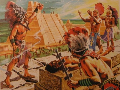1519 -جىلى يسپان كونكيستادورلارى، سونىڭ ىشىندە ەرنان كورتەس باستاعان اسكەر كەلگەننەن كەيىن استەك يمپەرياسى كۇيرەدى. يسپاندار ادام قۇرباندىعىن جابايىلىق دەپ ساناپ، بۇل ءداستۇردى كۇشپەن توقتاتتى جانە جەرگىلىكتى حالىقتى حريستيان دىنىنە وتكىزدى.