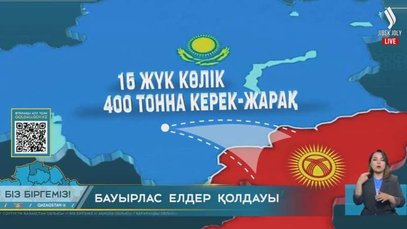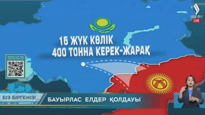 قازاقستاننىڭ ءبىرقاتار ءوڭىرىن سۋ باسقاندا قىرعىز اعايىن العاشقىلاردىڭ ءبىرى بولىپ كومەك كورسەتۋگە اسىقتى. ولار 300 توننا ازىق- تۇلىك پەن وزگە دە قاجەتتى زاتتار تيەلگەن 15 جۇك كولىگىن جىبەردى. گۋمانيتارلىق كومەك سۋ باسقان اقتوبە، اتىراۋ، بقو جانە قوستاناي وبلىستارىنا جەتكىزىلدى.