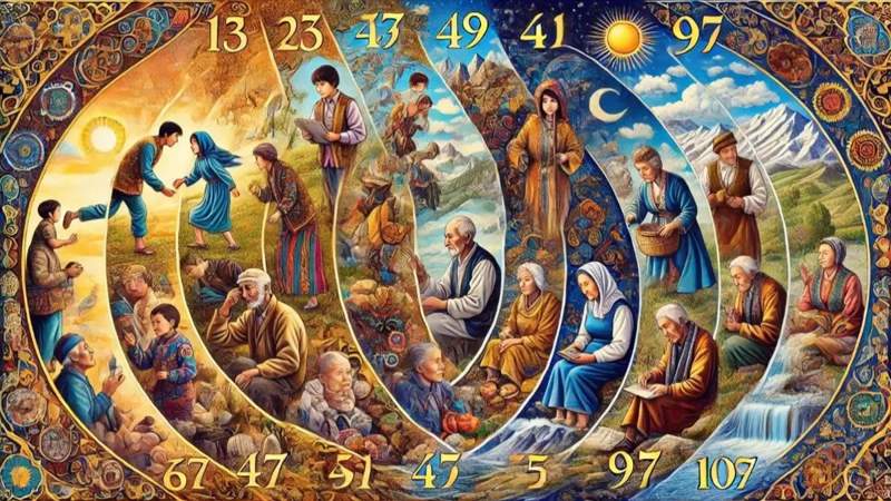 - ادامنىڭ ءومىرى 12 جىلدىق كەزەڭگە بولىنەدى جانە ءار مۇشەلدە ادام ومىرىندە ەلەۋلى وزگەرىستەر بولادى دەپ ەسەپتەلەدى: