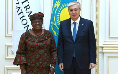 استانا. KAZINFORM - پرەزيدەنت قاسىم-جومارت توقايەۆ نگوزي وكوندجو- يۆەالاعا ءىلتيپات بىلدىرە وتىرىپ، قازاقستان دۇنيەجۇزىلىك ساۋدا ۇيىمىمەن ىنتىماقتاستىقتى كەڭەيتۋگە ايرىقشا ءمان بەرەتىنىن اتاپ ءوتتى، دەپ حابارلايدى اقوردانىڭ باسپا ءسوز قىزمەتى.