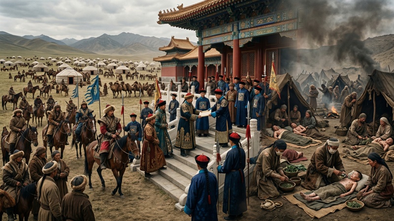 «چين اۋلەتىنىڭ قۇپيا مۇراعاتتارى» اتتى ەڭبەككە سۇيەنەر بولساق، قىتايدى جاۋلاپ العاننان كەيىن بيلىك قۇرعان ون ەجەن حاننىڭ ەكەۋى - شۋنجي مەن تۋنجيدىڭ اجالى شەشەكتەن بولعان. ال كاڭچي مەن سيانفەن قاۋىپتى دەرتتەن سۋ ىشەرلىگى بولىپ ءتىرى قالعانمەن، بەتتەرىندە شەشەكتىڭ داعى - قوراسان قالادى.