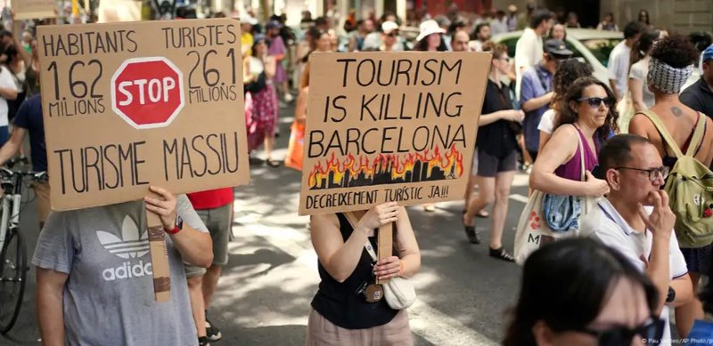 15-ماۋسىم كۇنى، ساياحاتشىلار اراسىندا تانىمال يسپانيا مەن يتاليا قالالارىندا باقىلاۋسىز تۋريزمگە قارسى دەمونستراتسيالار ۇيىمداستىرىلدى. Reuters اگەنتتىگىنىڭ مالىمەتىنشە، بارسەلونادا شامامەن 600 ادام قاتىسقان ميتينگ كەزىندە حالىق: «سەنىڭ دەمالىسىڭ - مەنىڭ قايعىم» دەپ ۇرانداپ، «جاپپاي تۋريزم قالانى جويادى» جانە «ولاردىڭ اشكوزدىگى ءبىزدى قۇرتادى» دەگەن جازۋى بار پلاكاتتار ۇستاپ شىقتى. كەيبىر بەلسەندىلەر سۋ تاپانشاسىمەن اتىپ، دۇكەندەر مەن قوناق ۇيلەردىڭ تەرەزەلەرىنە «تۋريستەر، ۇيلەرىڭە قايتىڭدار!» دەگەن جازۋى بار جاپسىرمالار جاپسىرعان.