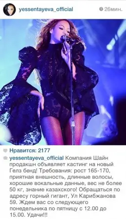 استانا. قازاقپارات - پروديۋسەر بايان ەسەنتايەۆا ءوزىنىڭ ينستاگرام جەلىسىندەگى رەسمي پاراقشاسىندا «Shine production» كومپانياسى جاڭادان قۇرىلاتىن توپقا كاستينگ جاريالايتىنىن مالىمدەدى دەپ حابارلايدى massaget.kzءتىلشىسى.