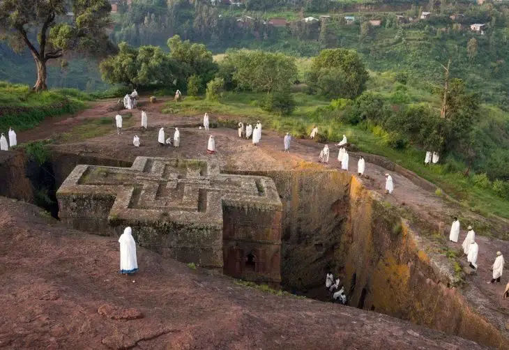 م. ەفيوپيا. لاليبەلا. افريكا دالاسىندا گەبرە مەسكەل پاتشانىڭ قۇرمەتىنە وتە قۇندى ەسكەرتكىش ساقتالعان. ونىڭ بيلىك باسىنداعى مەرزىمى 12-13 عاسىر. تەگىندە يەرۋساليمگە جول العان پاتشا قالانىڭ سۇلۋلىعىنا تامسانىپ، ءوزىنىڭ دالاسىندا ءدال سونداي قالا سالعىسى كەلدى. ءبىراق ول قالا جەر بەتىندە ەمەس، جەردىڭ استىندا سالىنعان.