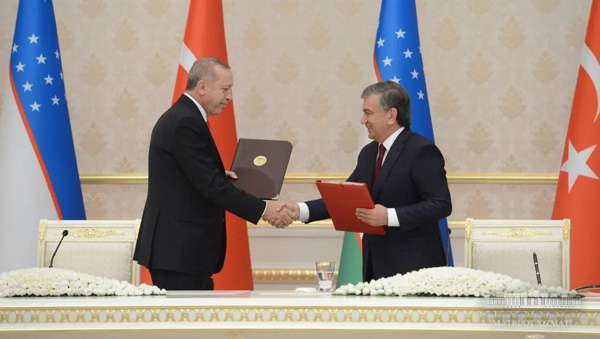 بۇل قۇجاتقا تۇركيا پرەزيدەنتى رەجەپ تايىپ ەردوعاننىڭ وزبەكستانعا ساپارى بارىسىندا قول قويىلدى.