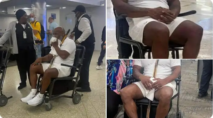 56 جاستاعى ەكس-چەمپيون مايامي حالىقارالىق اۋەجايىندا اربادا وتىرعان كۇيى كوپشىلىك كوزىنە تۇسكەن. سونداي-اق، ونىڭ قولىندا بالداق بولعان.