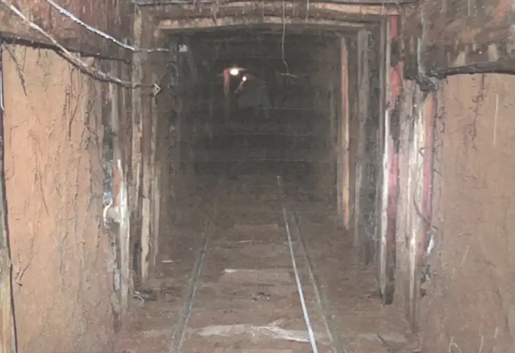 استانالىق جالعىز ءوزى قازعان 74 مەترلىك تۋننەل. ەدەندە ارباعا ارنالعان رەلستەر كورىنەدى. قابىرعالارى تاقتالارمەن نىعايتىلعان